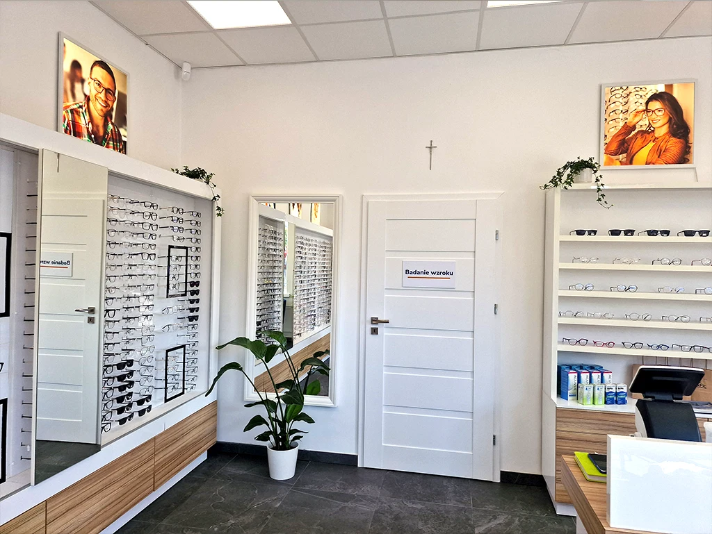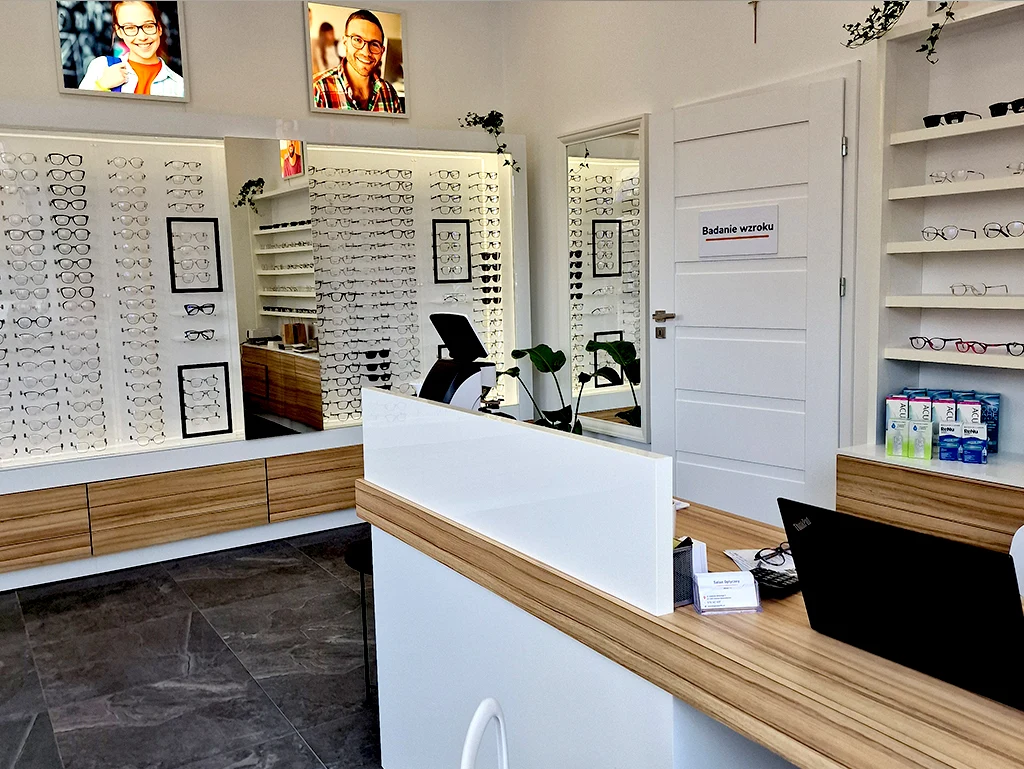 Salon optyczny prowadzi małżeństwo Jakub i Marika Fic. To nowoczesne miejsce, w którym każdy Klient czuje się zaopiekowany od samego progu. Oferujemy profesjonalne badania wzroku wykonywane przez doświadczonych specjalistów przy użyciu precyzyjnego sprzętu diagnostycznego. Nie musisz szukać okulisty i czekać na wizytę miesiącami. Do naszego salonu możesz przyjść bez aktualnej recepty na okulary – pełen pakiet badań wykonasz na miejscu.